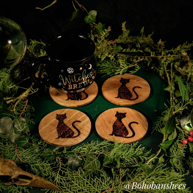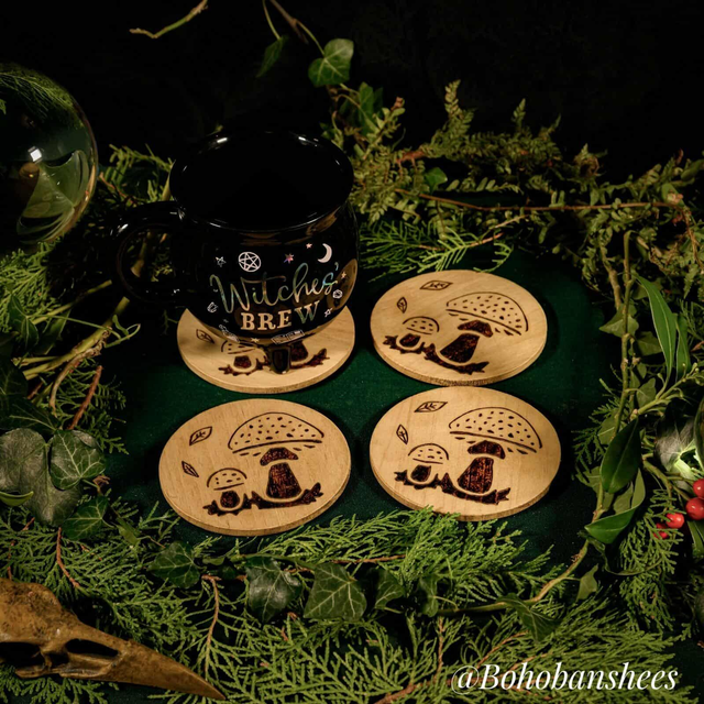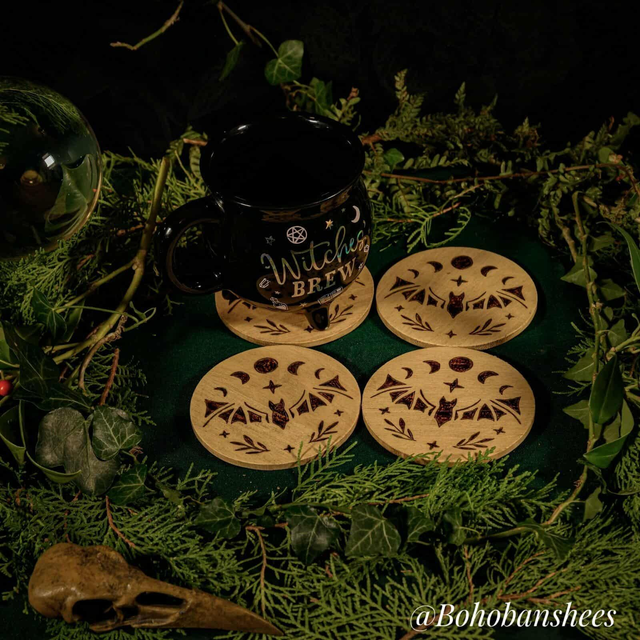 Made from wood and sealed for durability, these coasters bring a touch of rustic, mystical charm to any space. Ideal for witches, pagans, fantasy lovers or anyone who appreciates unique handmade gifts.