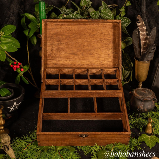 Ideal for witches, collectors, crystal lovers and anyone who appreciates handcrafted wooden storage.