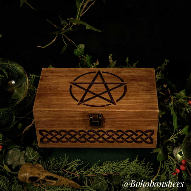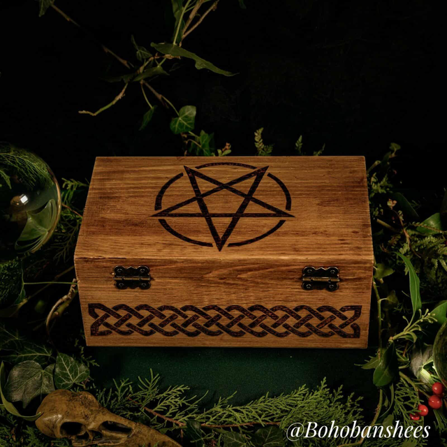 Hand-Burned Pentagram Wooden Box – Pentagram, Celtic Knot & Triskel Designs